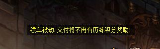 玩家在押镖过程中,如果遇到有劫镖的玩家攻击镖车,当镖车血量掉为0时,劫镖的玩家能获得镖车相应的历练积分奖励,已劫取过的镖车将无法再次劫取;而镖车被劫的玩家将会损失掉被劫的历练积分,不过还能将镖车押往目的地提交,获得经验值和招财进宝奖励。大家碰到镖车被劫时,可以主动进行守护镖车,或者找帮会的伙伴一起保护镖车哦。