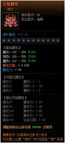 获取方式:击杀神罗天界中的BOSS“神罗天神”有几率掉落装备碎片,使用碎片可在NPC“兵魂之刃”处合成